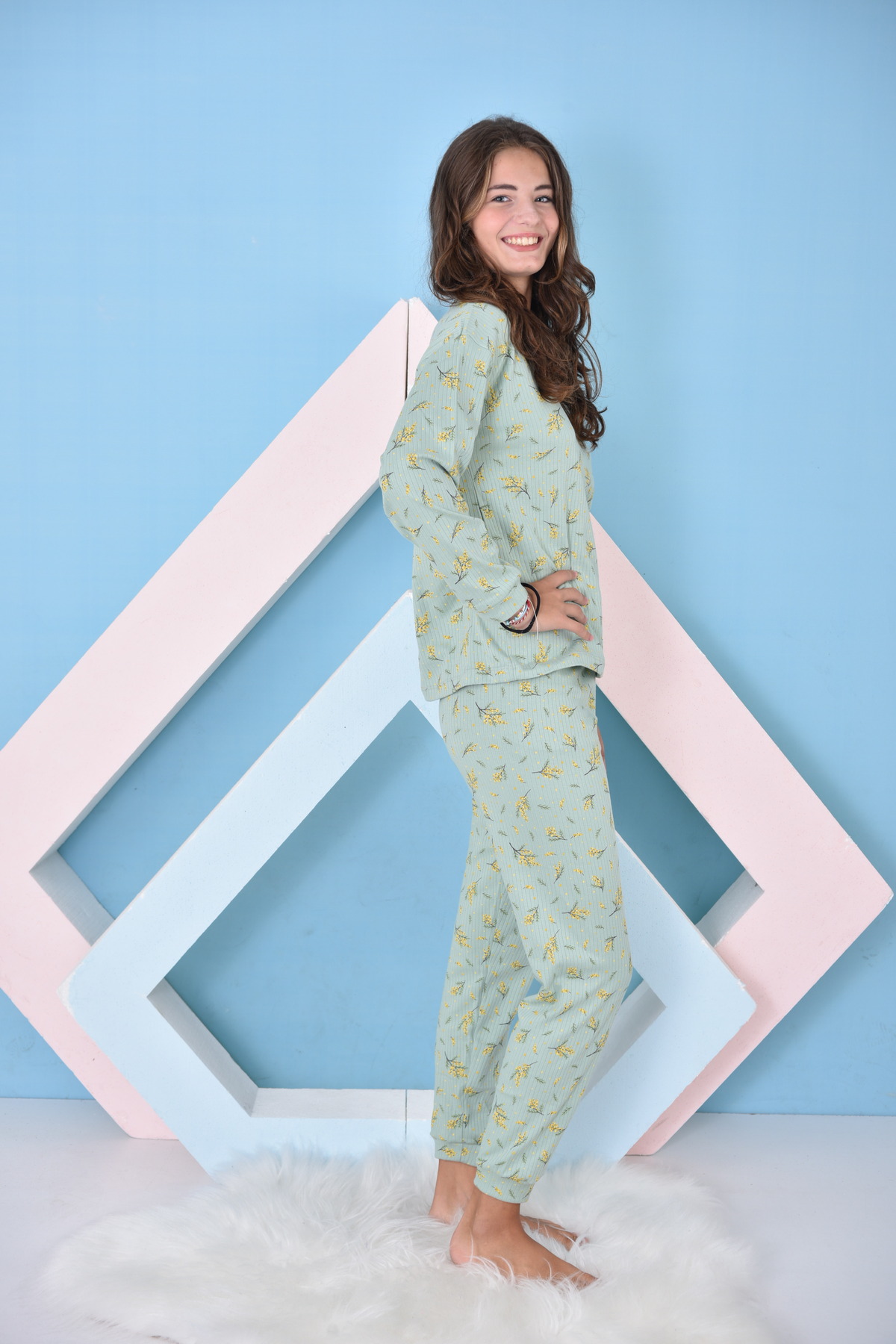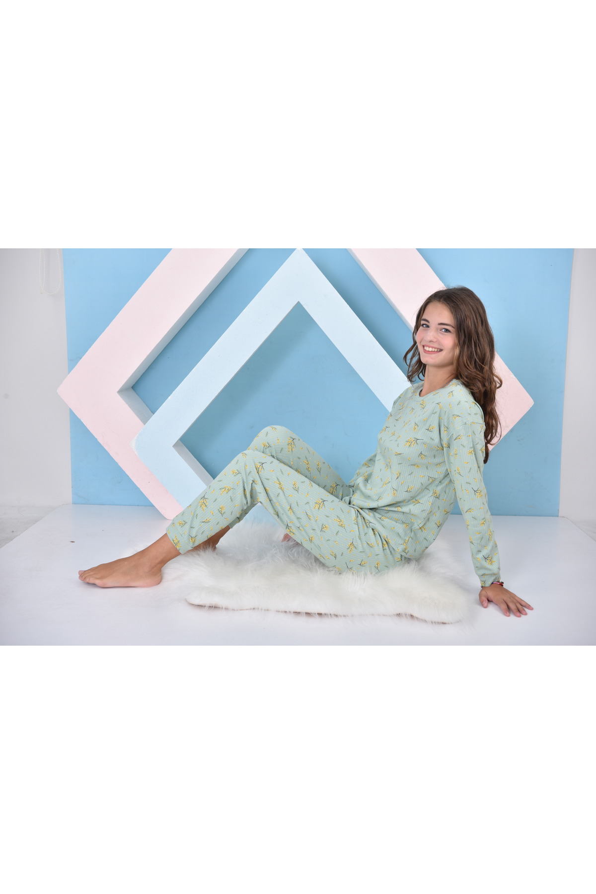 Kız Çocuk Garson Boy Empirme Süprem Kumaş(Hava Alabilen Terletmez) Mint Piyama Takım
